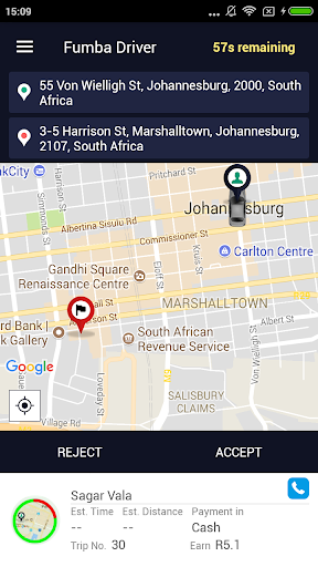Una vez que la cabina de la fumba se haya ordenado con éxito, los detalles del conductor y el vehículo se mostrarán al usuario.