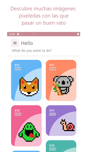 Disfruta creando animales pixelados como koalas, penguinos, zorros, obejas y muchos más imágenes. Decora tu habitación con tus propias creaciones