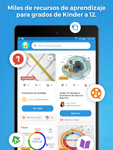Los maestros pueden buscar nuestros recursos de aprendizaje, asignarlos a sus estudiantes, realizar un seguimiento de la finalización de los mismos, supervisar el progreso del estudiante y comunicarse directamente con los padres.