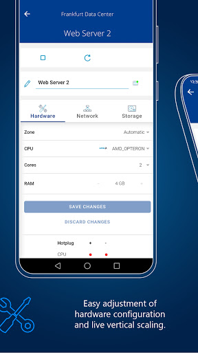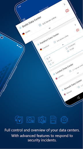 La aplicación Ionesos Data Center Manager (aplicación DCM) incluye todas las características importantes que necesita para administrar su iSos por 1 y 1 Nube Enterprise desde su teléfono inteligente.