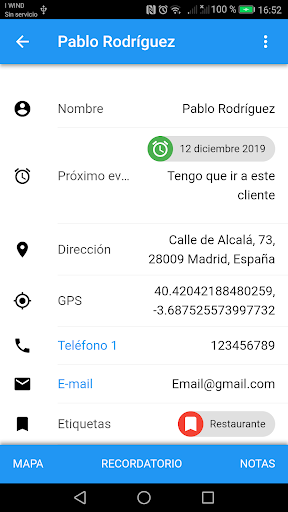 Una poderosa app CRM para gente de negocios, empresarios y en general cualquiera que necesite gestionar clientes. Registro de clientes, mapas, direcciones GPS, registros de actividad, archivar documentación en papel.