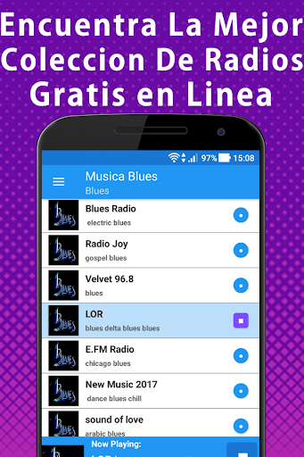 Las mejores canciones de musica blues escucha estaciones de radio gratis con bandas y bandas de Blues, musica africana asi que disfruta de la gran aplicacion puedes escuchar musica la mejor mezcla de Dj de los Estados Unidos transmitiendo principalmente de paises como: Estados Unidos, Colombia, Europa , Japón, Canadá, Alemania, Londres, Francia, y donde sea que estés, ya que no necesitas un reproductor para descargar música clásica inolvidable y la preferencia de los ritmos típicos afroamericanos del sur de Estados Unidos dentro de este concepto es una gran cantidad de géneros como: blues femenino clásico.