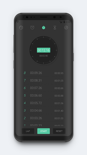 3. Cronómetro: Statwatch State se almacena para la próxima vez.La aplicación se ejecuta, por lo que aparecerá que el cronómetro se ha ejecutado continuamente en el medio.