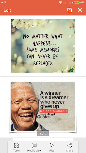 You can choose an image from the gallery in the order of pages in the desired PDF file by pressing a single button, you will create a PDF document. Images in this case are not subject to transformation and are placed in the document as it is so the final size of the PDF file will be approximately equal to the sum of the sizes of images.