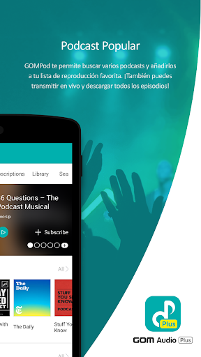 ● GOM Audio te notifica las actualizaciones de episodios de tu canal favorito.