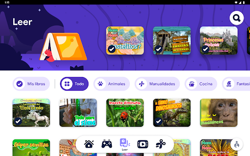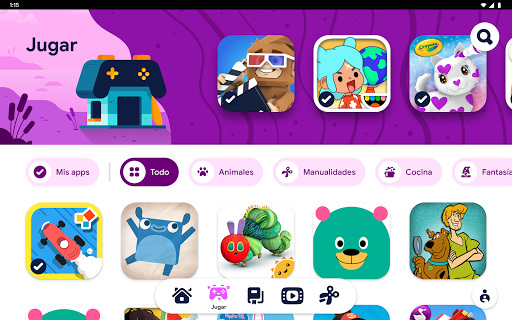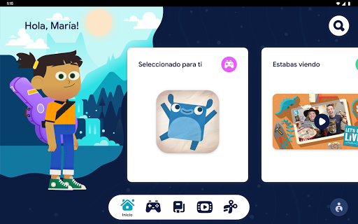Cuando un niño abre Google Kids Space, verá una biblioteca de contenido de calidad. Los niños pueden ver recomendaciones de aplicaciones, juegos, libros y vídeos para encontrar nuevas formas de jugar y aprender.