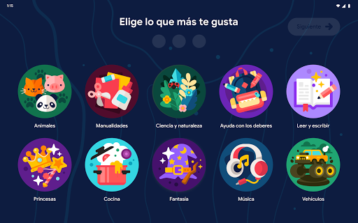 Google Kids Space requiere una cuenta de Google para tu hijo/a y un dispositivo compatible. El control parental requiere la aplicación Family Link en un dispositivo Android, Chromebook o iOS compatible. La disponibilidad de funciones puede variar en función de la región. Google Kids Space está disponible en determinados tablets Android. El Asistente de Google no está disponible en Google Kids Space.