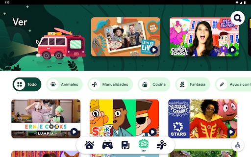 Google Kids Space recomienda vídeos de YouTube Kids que son creativos y divertidos. Ya sea para aprender, cantar o reír, los niños pueden explorar vídeos sobre sus temas y personajes favoritos.