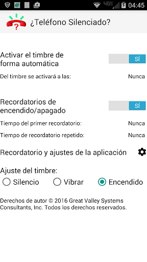¿Alguna vez ha perdido una llamada porque se le olvidó activar el timbre de nuevo? Esta aplicación le avisará cuando su timbre ha sido apagado. Notificaciones que se repiten pueden añadir tonos de alarma y vibración.