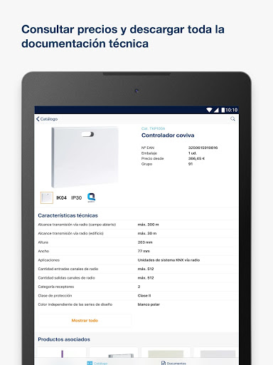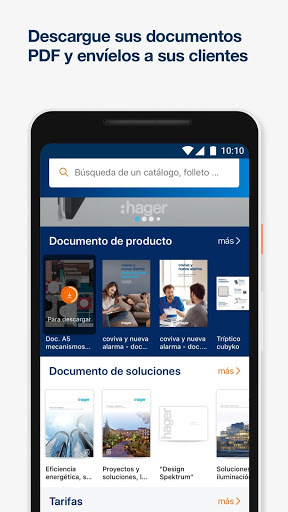 Documentación técnica y comercial de productos Hager en la misma aplicación. Todo está a tu