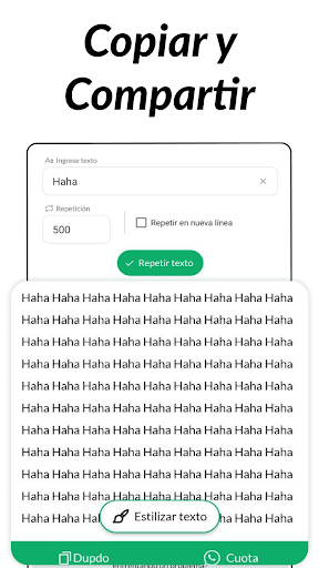 Ya sea que esté buscando generar bloques largos de texto para probar o crear múltiples instancias de una frase específica, Text Repeater es la herramienta para usted. Trabajamos constantemente para hacer que la aplicación "Text repeater app for android" sea mejor y más. diversión para ti y tus amigos spammers. Necesitamos su apoyo constante para hacer que Text Duplicator sea su aplicación preferida. No dude en enviarnos un correo electrónico para cualquier consulta/sugerencia/problema o si solo quiere saludar. Nos encantaría saber de usted.