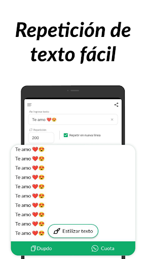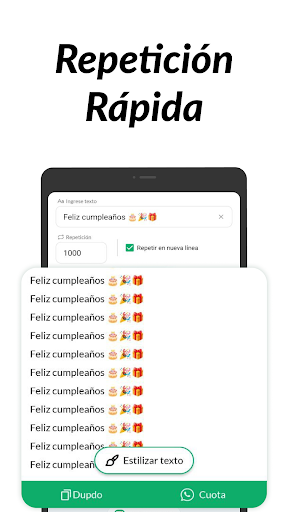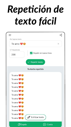 ¿Estás cansado de copiar y pegar el mismo texto una y otra vez? Y en ese momento, todo lo que necesitamos es un repetidor de texto que repita el texto hasta 10 000 veces. Todos tenemos situaciones en las que queremos demostrar nuestras emociones repitiendo un texto una y otra vez. Para todas esas situaciones, esta aplicación de repetición de texto es un regalo de Dios. Lo que hace es repetir cualquier texto tanto como quieras. Es uno de un tipo de repetidor de mensajes, una aplicación de bombardero de texto única para enviar mensajes repetidamente. La parte divertida de esta aplicación de repetición de texto es que también le permite establecer su límite de repetición con la repetición de texto de nueva línea. La aplicación repetidora de texto puede ayudarte a generar un texto repetido tantas veces como quieras. Puede configurar la frecuencia de su texto deseado y obtendrá el 'Texto repetido' en la sección de resultados de esta aplicación repetidora de texto. Simplemente puede copiar y pegar el texto repetido en cualquier momento que desee, ya sea en cualquier canal de redes sociales.