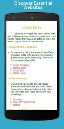 It is a Categorized list of Useful links and Online Resources that helps the students to get their Dream Job.