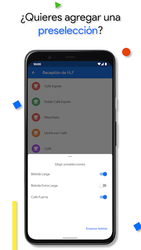 Esta aplicación permite de conectarse a cualquier máquina HLF y dispensar una bebida sin tocar la pantalla de la máquina.