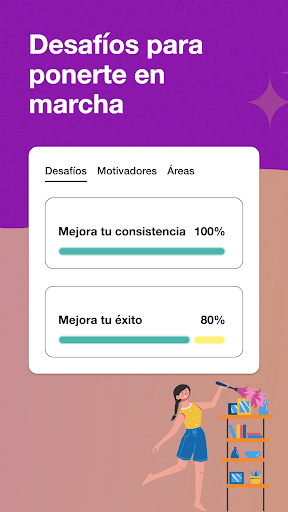 Obtén puntos de recompensa por cada tarea en el gráfico de la lista de verificación y completa diferentes desafíos de limpieza dentro de la aplicación, como el Desafío de Consistencia. Mantente enfocado en mantener tu hogar impecable y ordenado.