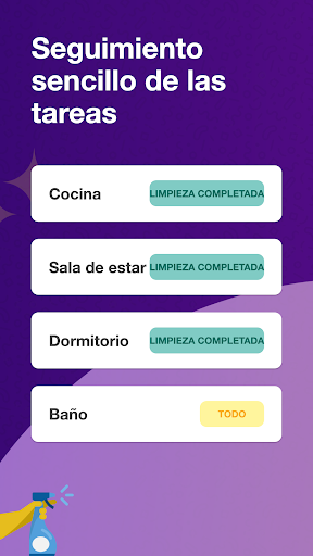 Completa las tareas en las listas de verificación para cada habitación con simples toques. Realiza un seguimiento de todas las tareas completadas en la pestaña de "Revisión". Establece recordatorios diarios de limpieza con fecha y hora.