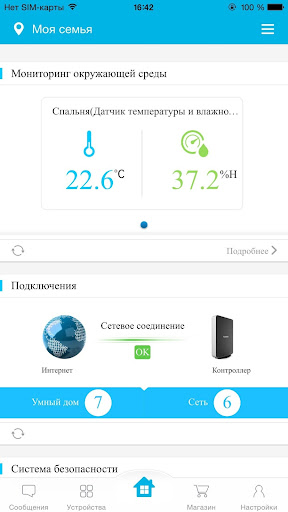 El sistema consta de sensores de control y monitoreo separados y dispositivos de control que el usuario por su discreción coloca en interiores. Bajo sus necesidades, el usuario configura el script de eventos y selecciona el número requerido de sensores y dispositivos.