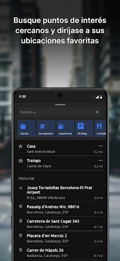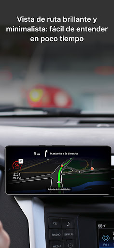 Mantiene la conducción sencilla y sin distracciones, y muestra solo el trazado de la carretera por la que te desplazas y la siguiente maniobra.