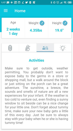 Artículos sobre consejos: nuestra aplicación lo ayudará a darle consejos para apoyarlo durante el primer año de vida de su bebé.