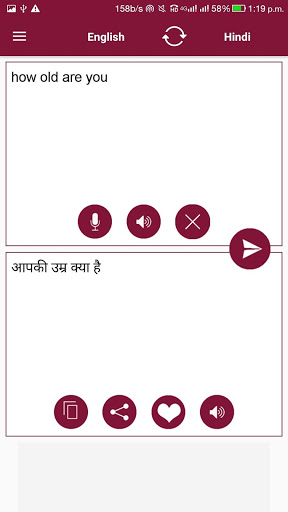 * You can use translated text to send message, mail, facebook post or whatsapp messages.