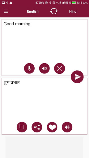 * App works in both mode, Hindi to English Translator or English to Hindi Translator.
