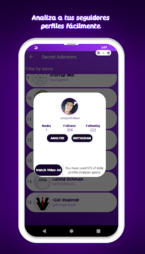 Obtenga toda la información en un solo lugar y descubra lo popular que es. Independientemente de si necesita darse cuenta de quién le gusta sus historias o dejar de seguir a aquellos que no participan, descubrirá todos los datos que necesita en nuestros informes para insta. Simple, fácil y divertido.