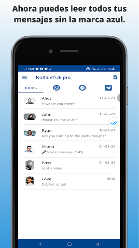 Cuando reciba un mensaje de una aplicación de chat, también se mostrará en NoBlueTick. Allí, puedes leerlo cuando quieras, sin que ninguno de tus amigos sepa que lo has visto.