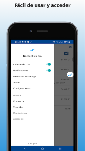 No se moleste más en quitar la conexión a Internet o activar el modo Airplan. NoBlueTick ofrece un diseño simple pero hermoso y facilita la administración de sus mensajes.