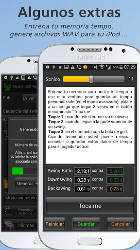 * La única aplicación donde el tempo es totalmente configurable y permite un tempo lento (útil para las personas mayores) y un tempo extremadamente rápidos como los pros más rápido del PGA tour y los tempos intermedios