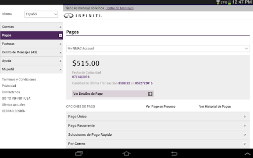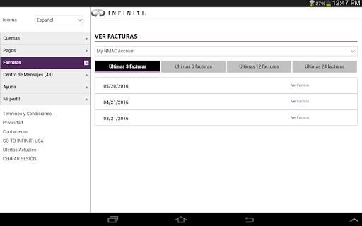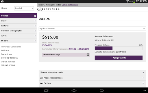 La aplicación de Infiniti Financial Services (IFS) Online Account Manager permite a un cliente existente de IFS que tenga acceso a su cuenta a la hora que lo necesiten. Puede buscar su comerciante más cercano e incluso programar un pago en línea, ahora seremos la unica aplicación que necesita.