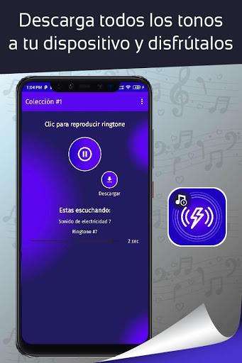 Ya se encuentra en Play Store disponible para descargar nuestra nueva aplicación gratis Tonos de electricidad. Descárgala ahora mismo y disfruta de todo el contenido. Tiene una excelente colección de ringtones solo elige tu tono favorito y personalízalo en tu dispositivo Android para utilizarlos ya sea como tonos de llamadas, tonos de SMS, alarmas o notificaciones.