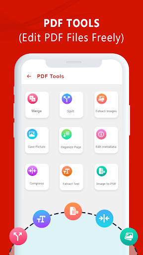 El lector / visor de PDF es una herramienta de Android que le ayuda a abrir o ver todos los archivos PDF en su teléfono Android como un simple archivo pdf, archivo pdf con imágenes, archivos pdf grandes. También puede combinar varios archivos PDF en un solo archivo. También puede dividir un archivo o documento PDF y extraer imágenes de un documento PDF. Esta es la herramienta de lectura y visualización de pdf más avanzada con su función de modo oscuro para que pueda leer libros desde un archivo pdf con un filtro oscuro para proteger sus ojos. Esto también es un extractor de imágenes, divisor y fusión de PDF. Este también es un editor de pdf, puede editar fácilmente sus archivos pdf con esta aplicación
