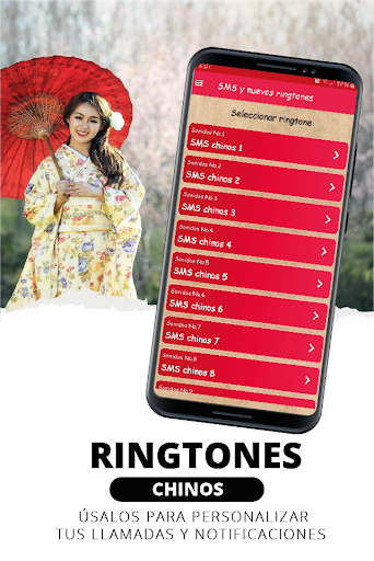 El contenido gráfico de la app ringtones chinos disfruta de nuestra nueva app con tonos chinos para celular (úsalos como tonos de llamadas, tonos de SMS, alarma o notificación) y disfruta estos excelentes ringtones, se descargó paginas libres para uso comercial con atribución al autor.