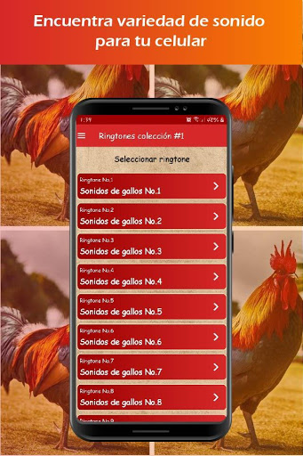 El contenido gráfico de la app ringtones de gallos disfruta de nuestra nueva app con tonos de gallos para celular (úsalos como tonos de llamadas, tonos de SMS, alarma o notificación) y disfruta estos excelentes ringtones, se descargó paginas libres para uso comercial con atribución al autor.