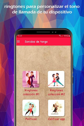 El contenido gráfico de la app ringtones de tango disfruta de nuestra nueva app con tonos de tango para celular (úsalos como tonos de llamadas, tonos de SMS, alarma o notificación) y disfruta estos excelentes ringtones, se descargó paginas libres para uso comercial con atribución al autor.