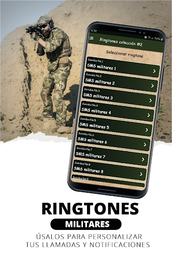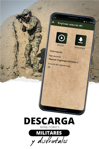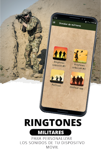 El contenido gráfico de la app ringtones militares disfruta de nuestra nueva app con tonos militares para celular (úsalos como tonos de llamadas, tonos de SMS, alarma o notificación) y disfruta estos excelentes ringtones, se descargó paginas libres para uso comercial con atribución al autor.