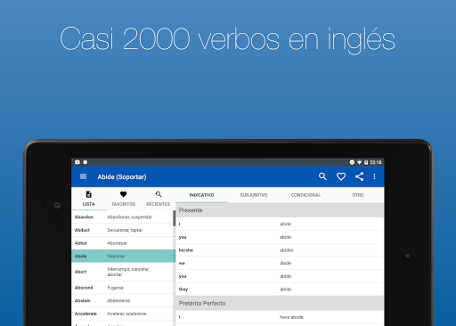 Busca entre 2000 verbos en inglés con 20 tiempos. Gracias a la navegación simple, podrás encontrar el verbo que necesitas en segundos.