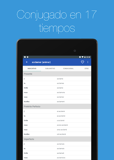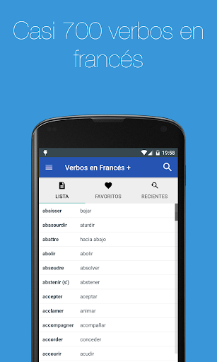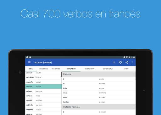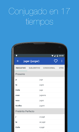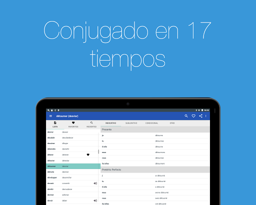 Podrás ver casi 700 verbos franceses en 17 tiempos. Con la navegación sencilla y la búsqueda integrada, podrás encontrar el verbo que necesitas en solo segundos.