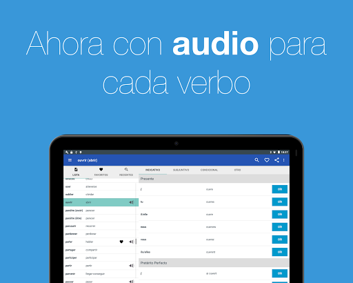 Ahora con audio! No está seguro de cómo pronunciar un verbo? Ahora puedes oír cómo se pronuncia cada verbo. Sólo tienes que pulsar en el botón al lado de la conjugación. Nota: esta funcionalidad requiere una conexión a Internet.