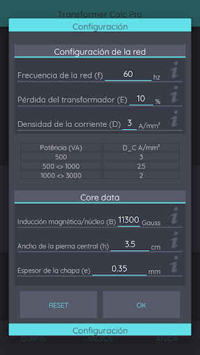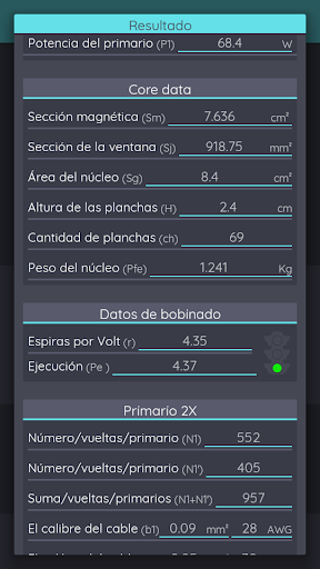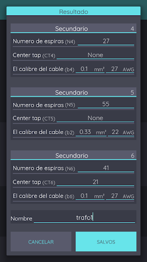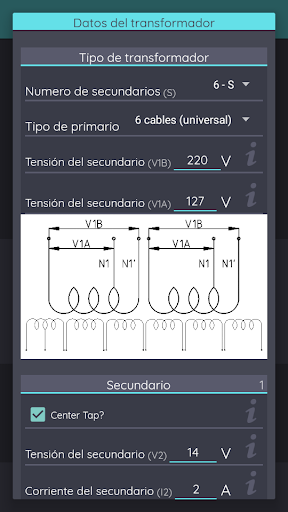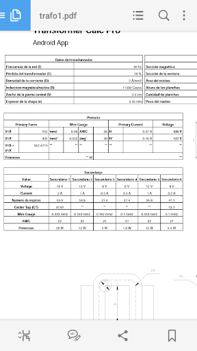 Transformador calc pro es una herramienta para calcular transformadores de hasta 3.000 W con la mayor precisión. Está disponible en 3 idiomas. Portugués, inglés y español Los transformadores se pueden crear con 5 tipos de Primaria y hasta 6 secundarios. Puede guardar sus transformadores en una base de datos para ser vistos y montados cuando sea mejor, y cree una Datasheet PDF automáticamente. Este Aplictio fue desarrollado para ayudar a las personas entusiastas de la electrónica como profesionales. El algoritmo utilizado en esta aplicación es muy confiable, y en nuestras pruebas mostró una gran precisión.