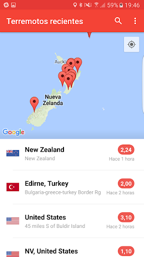 - Diseño hermoso y simple. Observa los terremotos en el mapa o en una lista.