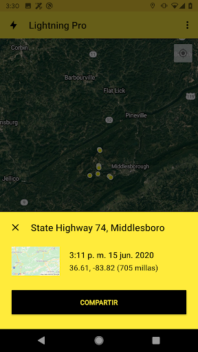 - ¡Comparte un relámpago con tus amigos para que puedan ver dónde están sucediendo los truenos y relámpagos también!