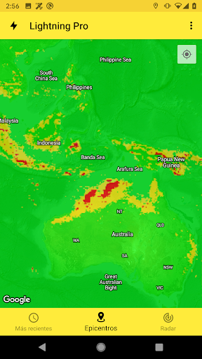 - ¡Ve un historial de epicentros donde los relámpagos ocurren con mayor frecuencia!