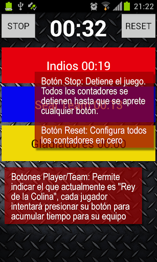 Kink of the Hill (Rey de la colina): El cronómetro no sólo controla el tiempo total de juego y su finalización, sino que también le permite a cada equipo o jugador llevar la cuenta del tiempo parcial en el cual mantuvieron una posición en su poder.