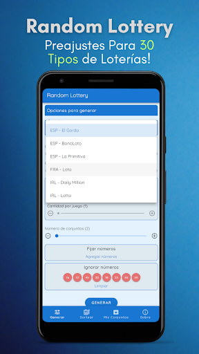 Puede utilizar la lotería aleatoria para generar combinaciones de números para cualquier tipo de lotería o para cualquier combinación de números que desee.