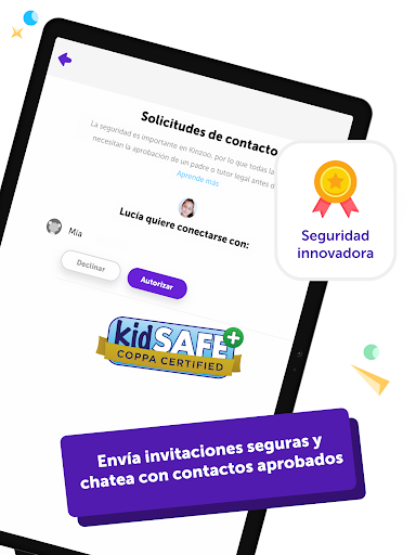 • Controle a los contactos de sus hijos; los padres aprueban todas las solicitudes de conexión antes de que los niños puedan recibir o enviar mensajes.