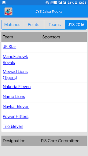 6) Listado de equipos: Jys es todo sobre quién está jugando en qué equipo. También, consulte a los propietarios del equipo.