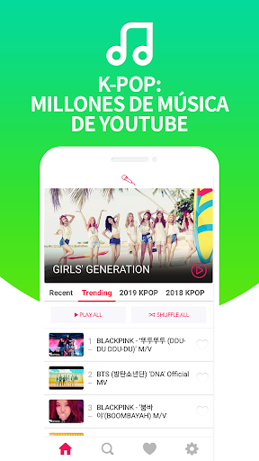 En esta aplicación, puedes escuchar la mejor música K-Pop, Varios espectáculos de talentos, conciertos en vivo, Idol coreano, K-Rock y K-Ballad, cantados y realizados por los artistas más famosos como: BTS, EXO, MAMAMOO, GOT7, Blackpink, Bigbang, dos veces, generación de niñas, Psy, entre mucho mas. Además, puedes crear tu propia lista de reproducción de tus canciones favoritas de K-Pop. ¡Descarga música K-Pop en este momento y disfruta de la mejor música de K-pop de todos los tiempos!