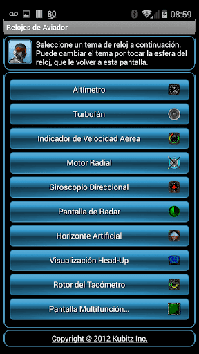 La versión gratuita viene con 3 temas de aviación reloj y 3 fondos de pantalla de cabina. Una clave de licencia pueden ser comprados que desbloquea 10 más temas de aviación reloj y 5 más fondos de pantalla para satisfacer cualquier piloto. La clave de licencia es una compra de una sola vez, que Google Play gestionará de manera que todos los temas se desbloqueará en sus otros dispositivos Android también.