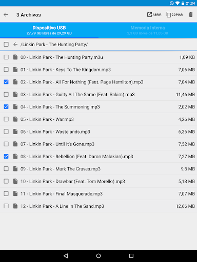 USB OTG File Manager for Nexus soporta dispositivos con múltiples unida des lógicas (como un GPS con una memoria interna y una tarjeta SD adicional) y permite elegir cuál unidad lógica quiere leer.